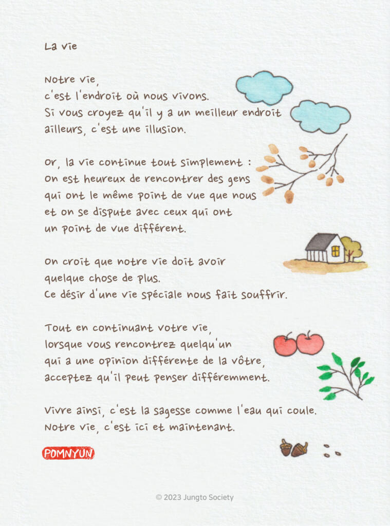 Vivre ainsi, c’est la sagesse comme l’eau qui coule.