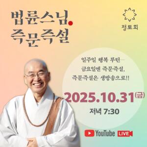 이번 주는 법륜스님의 해외일정으로 인해 24년 9월에 진행된 즉문즉설 녹화 영상이 방송될 예정입니다.☺️✨