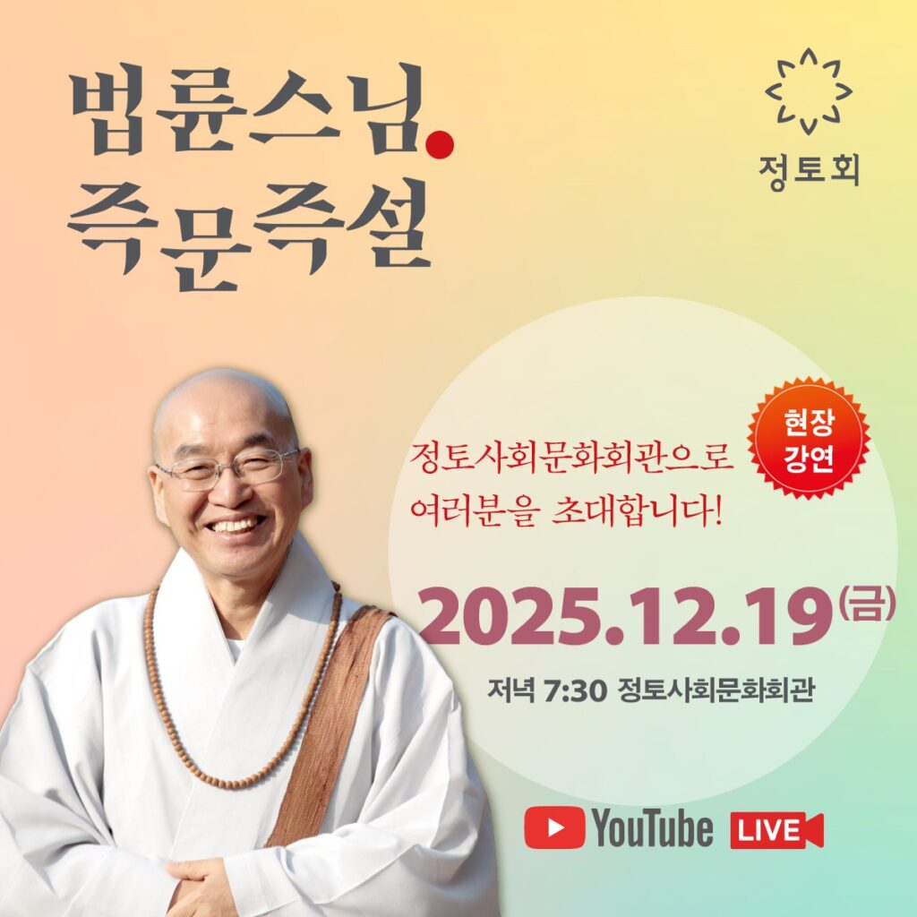 이번주는 서울 서초동정토사회문화회관에서 오프라인 즉문즉설이 예정되어 있습니다☺️✨