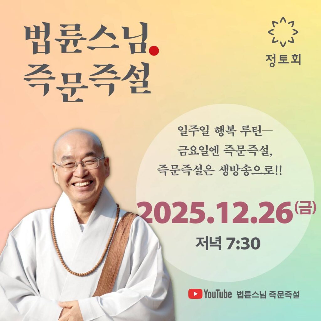 이번 주는 정토회 가정주간이므로 녹화된 즉문즉설 영상이 방송될 예정입니다.☺️✨